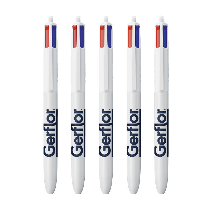 Pack of 5 BIC 4-colour pens with 4 different inks on a single biros: blue, black, red, green.