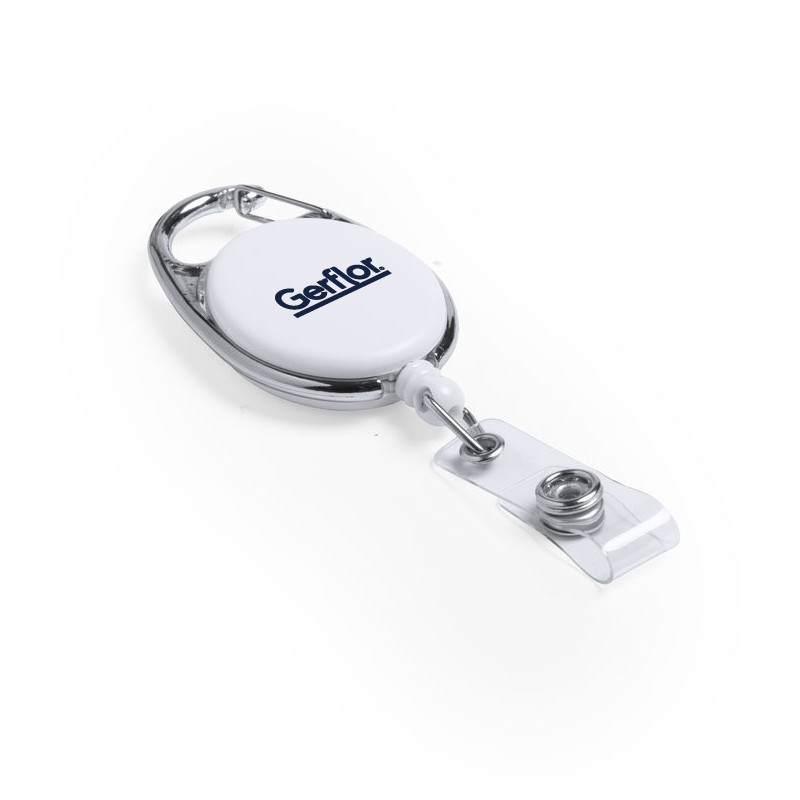 Porte-badge extensible au design sobre, avec un accessoire de fermeture à bouton pour accrocher le badge et avec un mécanisme extensible jusqu'à 75 cm. Le mousqueton à crochet métallique est inclus.